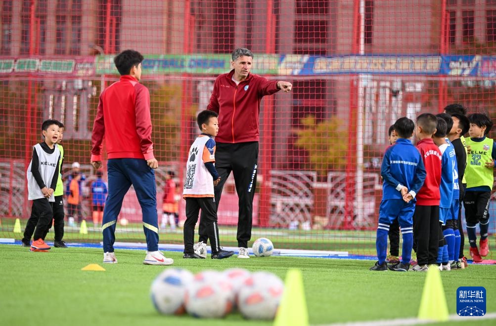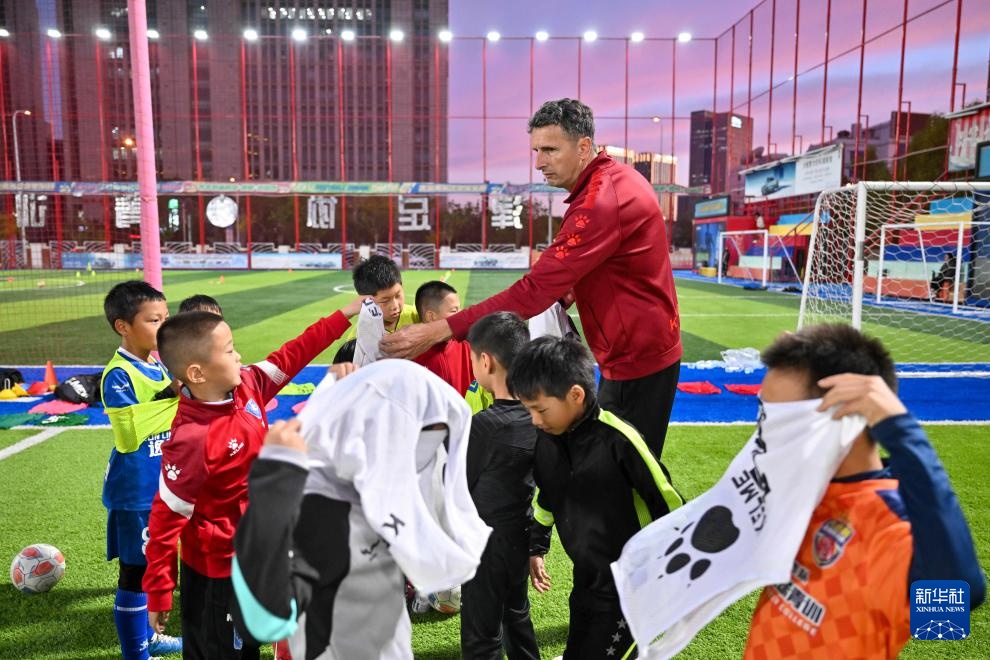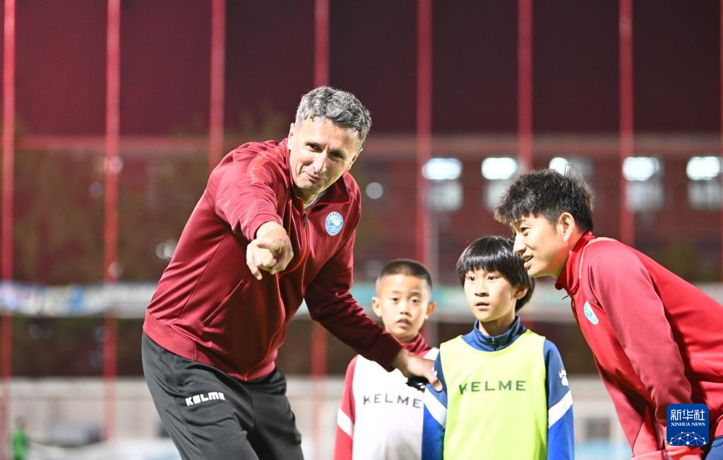 “洋洋!兩個!一個人這里,一個人這里!很好!”在天津市足協青訓基地,今年54歲的塞爾維亞籍足球教練亞歷山大·潘蒂奇在綠茵場上用中文高聲為小球員指點著防守站位。身高兩米的他還俯下身,與翻譯一起耐心指導小球員的動作細節。