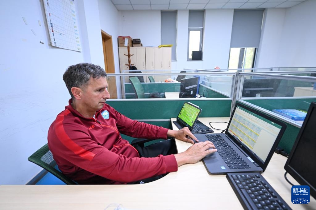 亞歷山大·潘蒂奇在天津市足協的辦公室內準備訓練計劃(4月23日攝)。新華社記者 孫凡越 攝