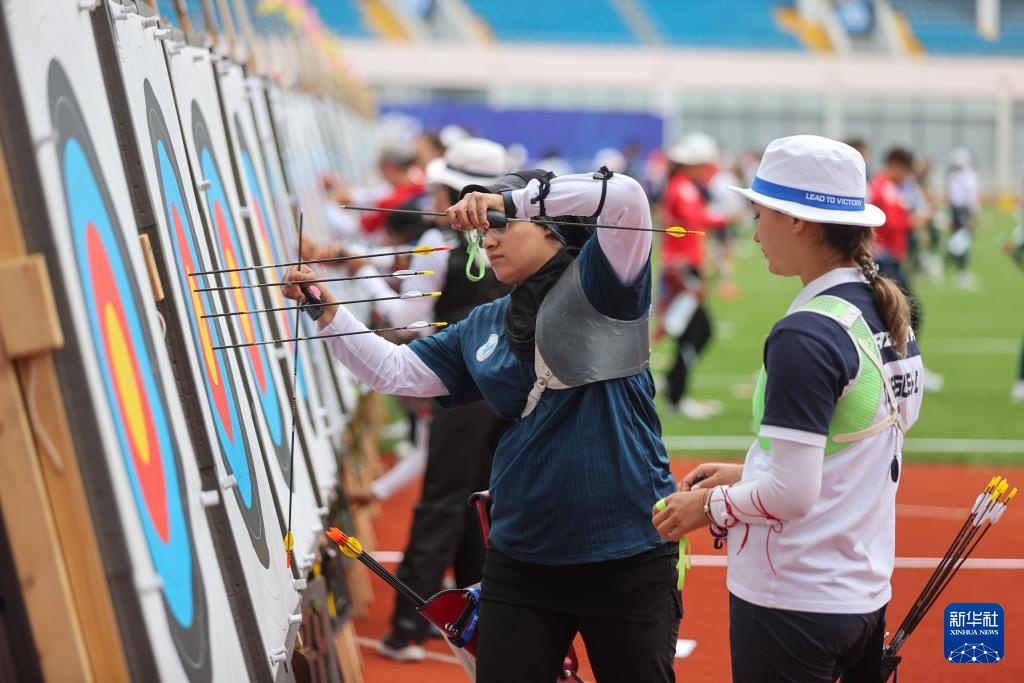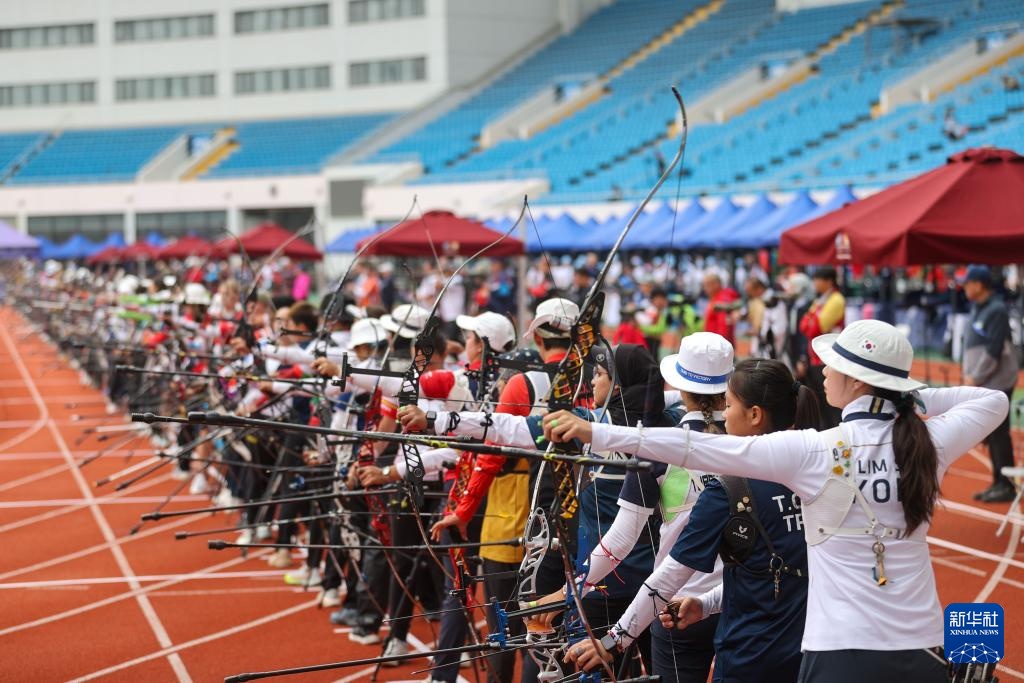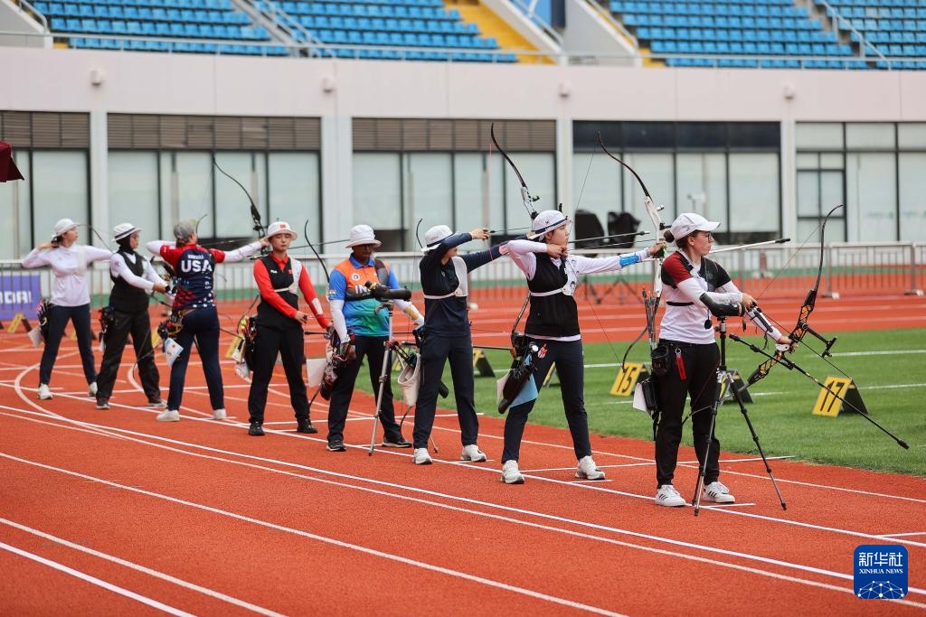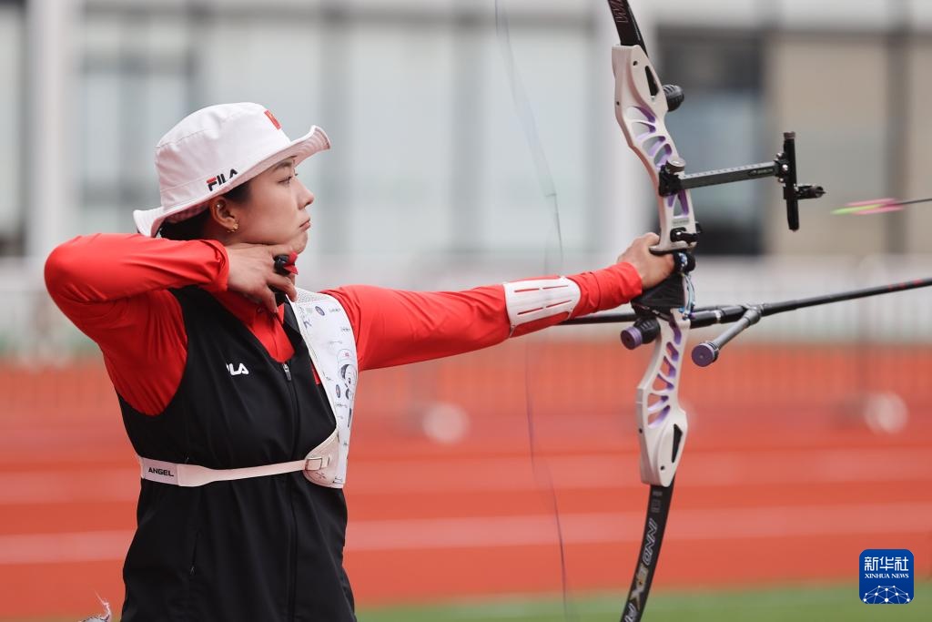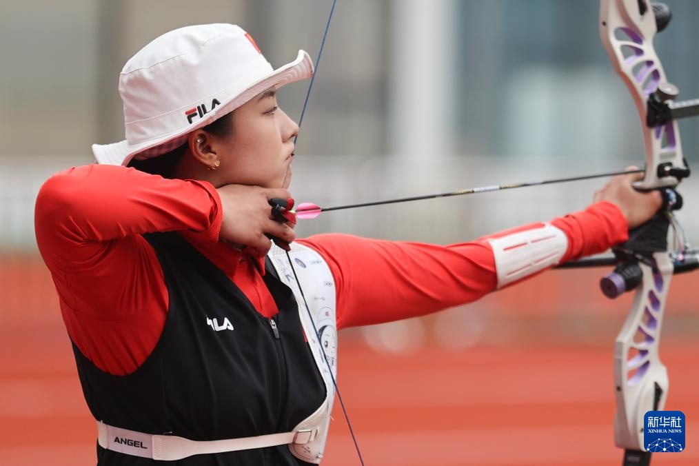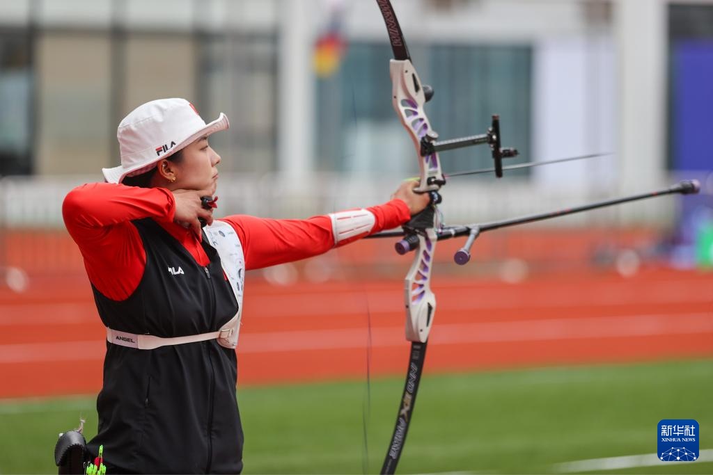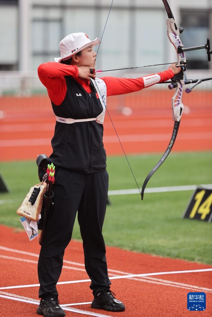 4月26日,參賽選手在女子反曲弓個(gè)人淘汰賽中。新華社記者 王翔 攝
