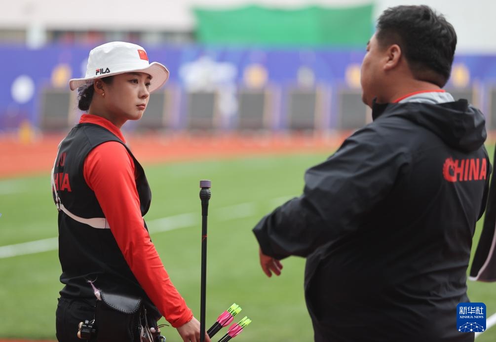 4月26日,參賽選手在女子反曲弓個(gè)人淘汰賽后。新華社記者 王翔 攝