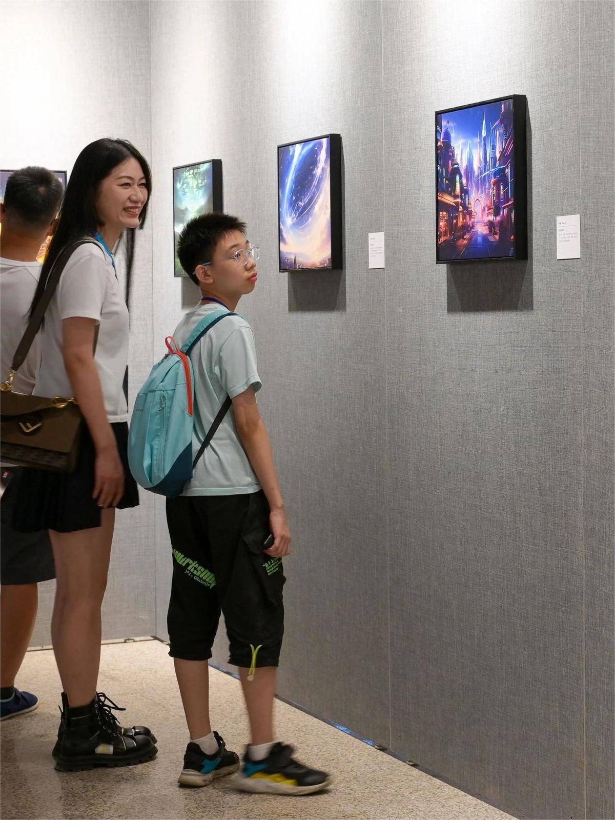 光怪陸離的湖邊古堡、星光閃耀的城市夜空、綠樹環(huán)繞的未來城市……漫步武漢人工智能計算中心大廳,一幅幅嵌在墻上的裝飾畫均由AI設計創(chuàng)作。