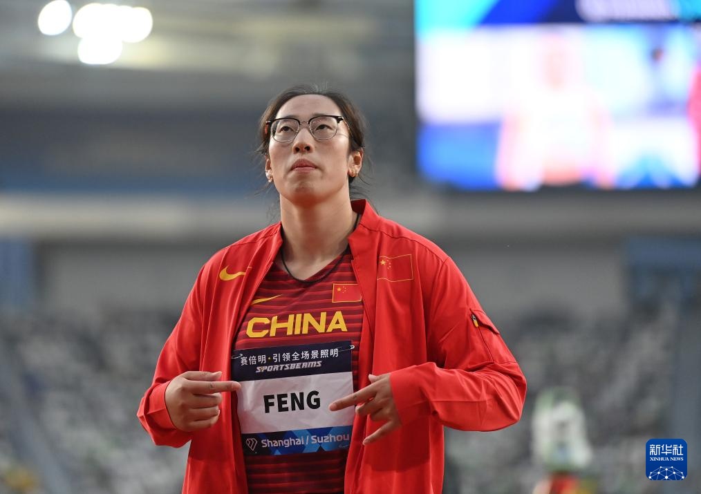 4月27日,中國選手馮彬在試投后,她以67米11的成績獲得亞軍。新華社記者 宋彥樺 攝