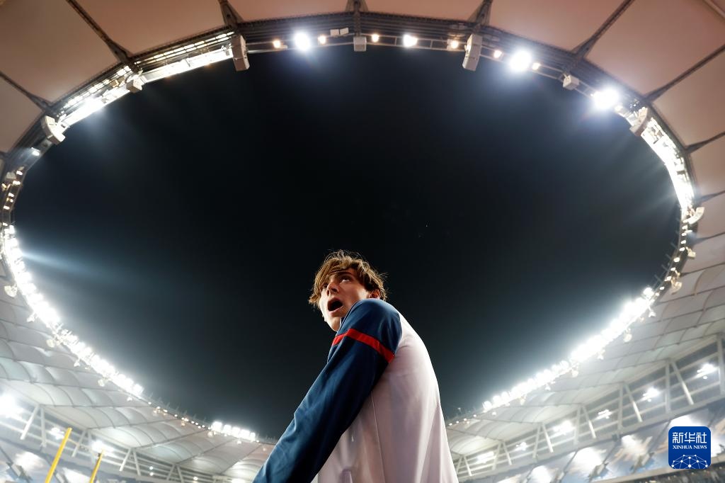 4月27日,瑞典選手杜普蘭蒂斯在試跳6米25的高度間隙。新華社記者 王麗莉 攝