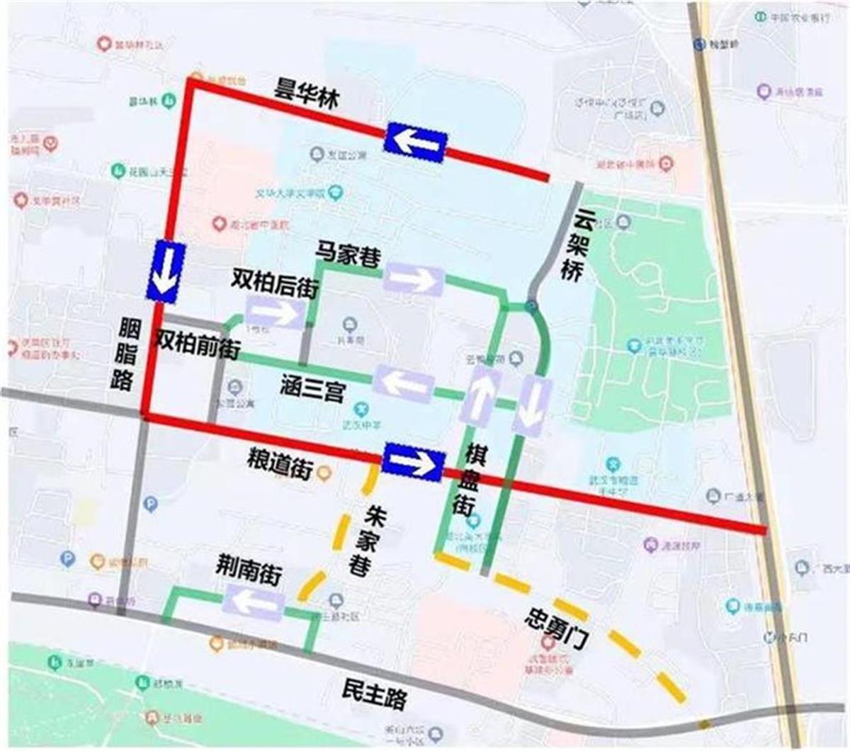 武珞路武昌路路口,每日8:00-22:00,禁止機(jī)動(dòng)車直行,往長(zhǎng)江大橋方向行駛的車輛一律繞行至武珞路中山路路口掉頭,經(jīng)首義廣場(chǎng)地下通道上長(zhǎng)江大橋;