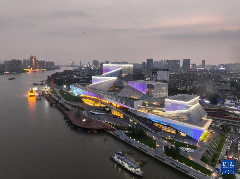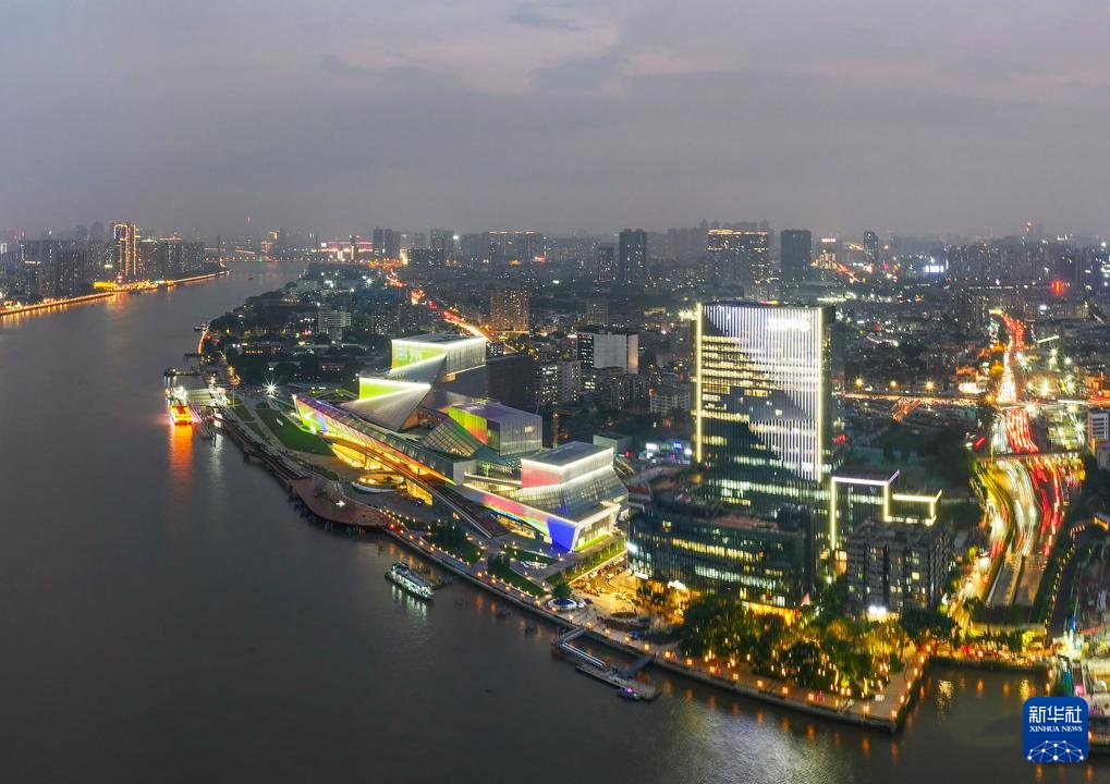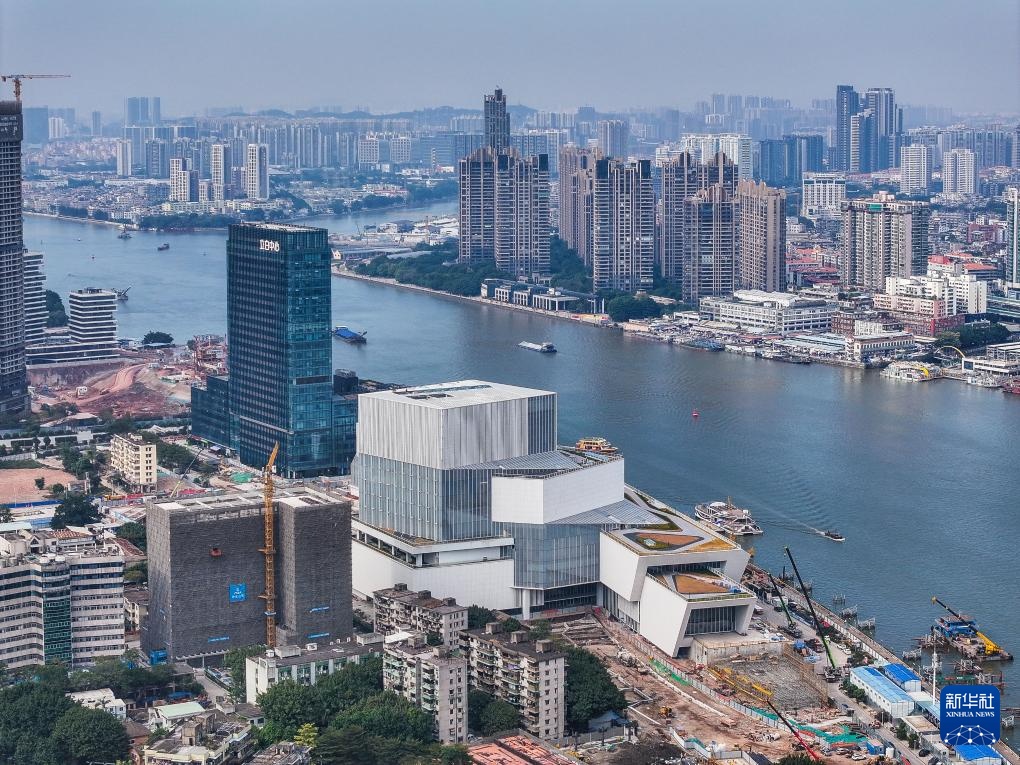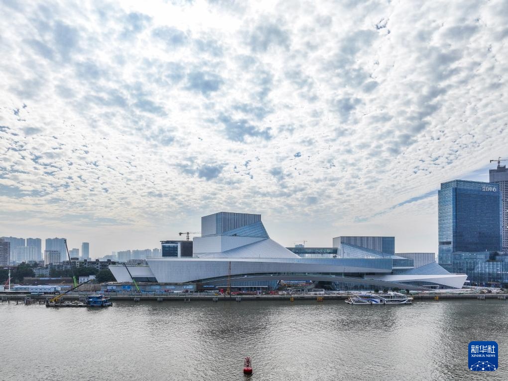 中建三局承建的白鵝潭大灣區藝術中心由中國工程院院士何鏡堂領銜設計,建筑以“文化巨輪、時光拱廊、鵝潭寫意、云山藝境”為理念,三館高低錯落、層次分明,從江岸向后逐漸由低到高、疊級而上,從遠處看有巨輪出海之態,寓意“嶺南文化乘風破浪、遠播四海”。