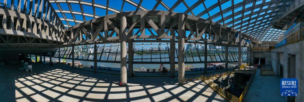 鋼結構施工階段的白鵝潭大灣區藝術中心(2022年10月12日攝)。