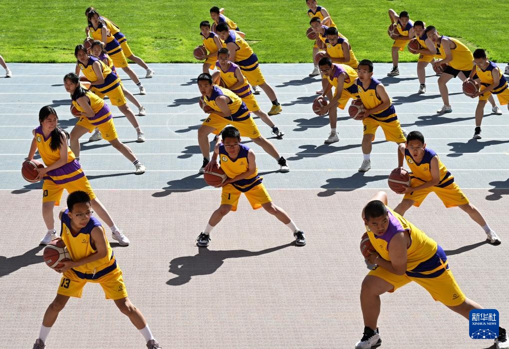 4月28日,學生在開幕式上進行籃球項目表演。新華社記者 陳朔 攝