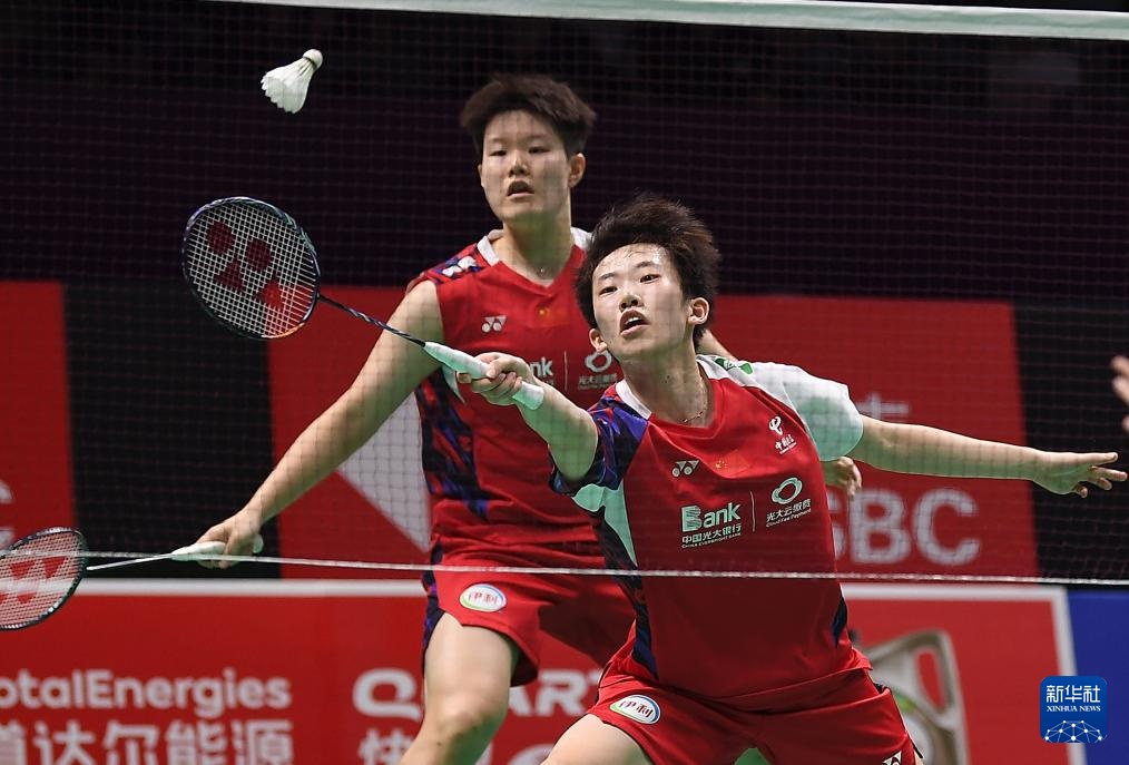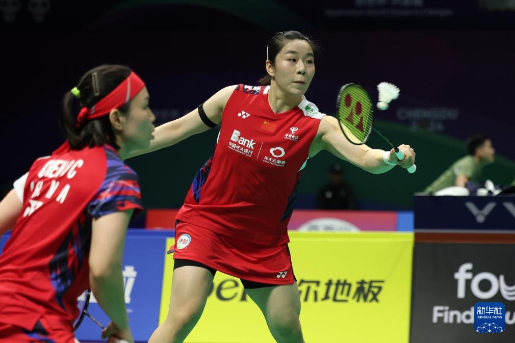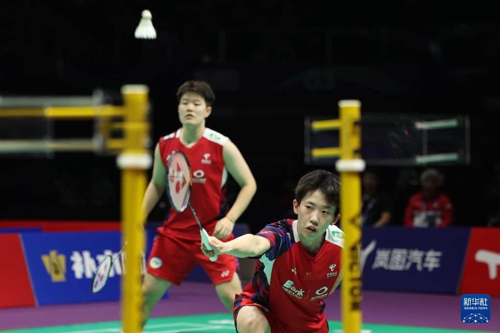 4月28日,中國隊(duì)組合劉圣書/張殊賢(前)在女雙比賽中。她們2比0戰(zhàn)勝加拿大隊(duì)組合杰斯林·周/埃莉安娜·張。新華社記者 侯昭康 攝
