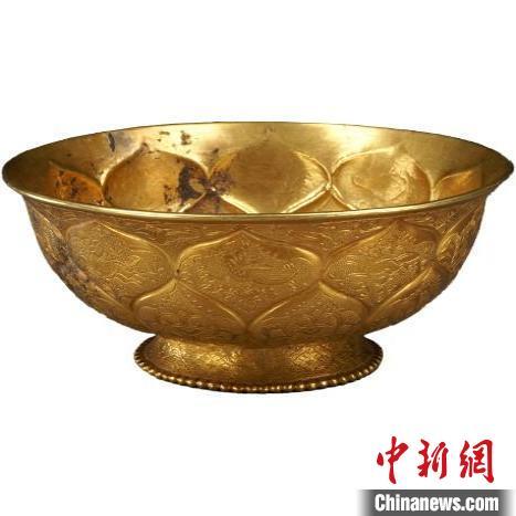圖為鴛鴦蓮瓣紋金碗。陜西歷史博物館供圖