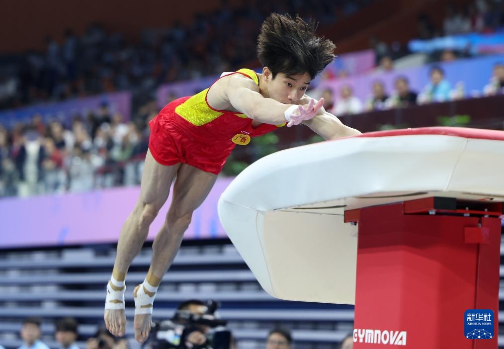當日,在廣東肇慶舉行的2024年全國體操錦標賽暨巴黎奧運會選拔賽男子跳馬比賽中,廣西隊選手黃明淇以14.600分的成績奪得冠軍,貴州隊選手陳治龍與浙江隊選手陳憶路分獲亞軍和季軍。