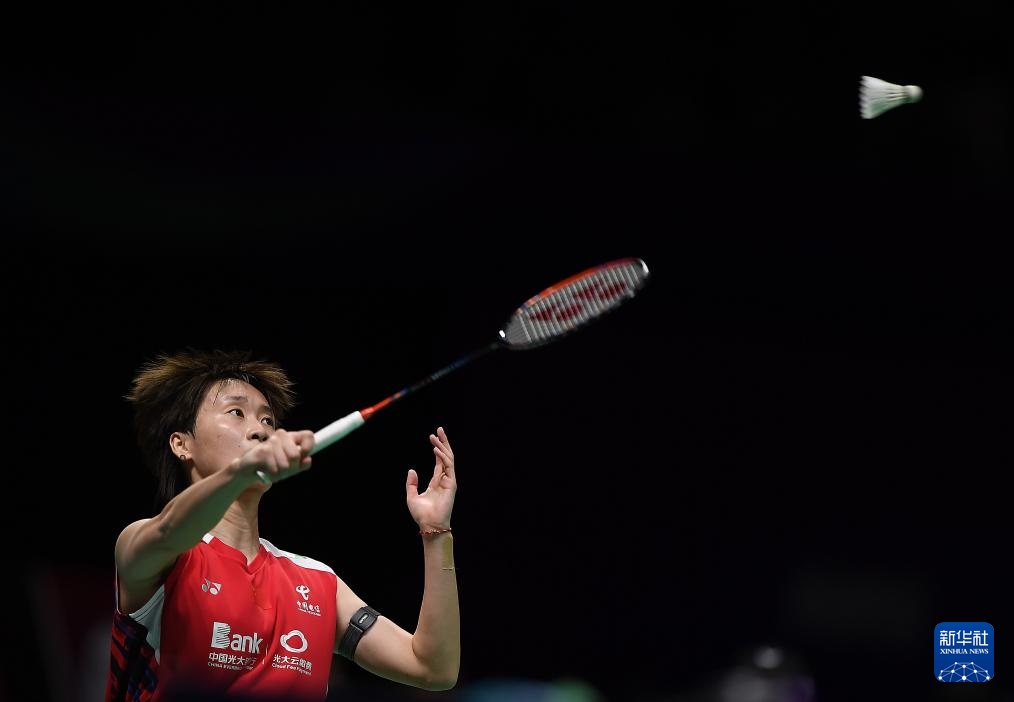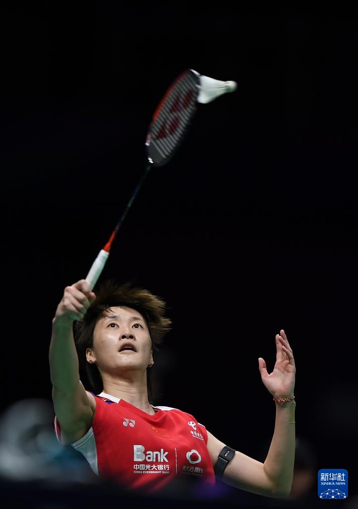 4月30日,中國隊選手陳雨菲在女單比賽中回球。她2比0戰勝印度隊選手巴魯阿。新華社記者 侯昭康 攝