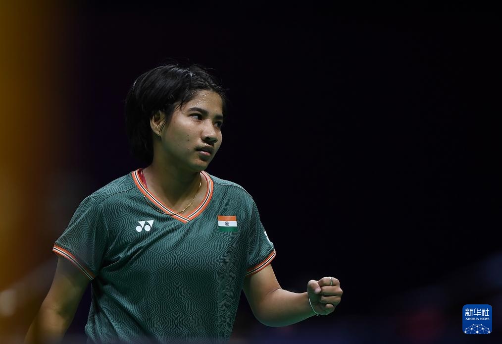 4月30日,印度隊選手巴魯阿在女單比賽中慶祝得分。她0比2不敵中國隊選手陳雨菲。新華社記者 侯昭康 攝