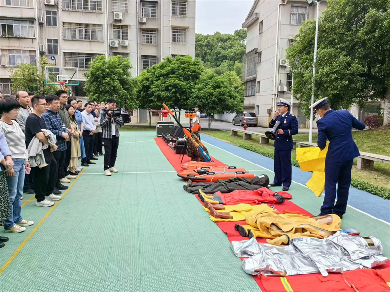 活動中,消防救援人員給員工們展示了各種消防救援裝備,現場講解各類救援裝備的用途、名稱、功能和操作事項。