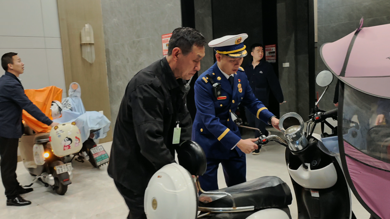 “請將這些停放的自行車都移到外面集中停放的位置,入戶大廳這里不能停放”4月25日晚,咸寧高新技術產業開發區消防救援大隊開展電動自行車消防安全集中夜查行動,打通生命通道。消防監督員走進轄區高層建筑小區,采取“邊檢查、邊指導、邊宣傳”的方式,實地查看小區居民樓公共門廳、樓梯間、安全出口等公共區域內電動自行車是否存在違規停放、私拉亂接電線等行為。針對樓道里違規停放的電動自行車進行了立刻清理,針對“飛線”充電情況要求業主立刻撤掉,并對違規住戶進行警示教育。