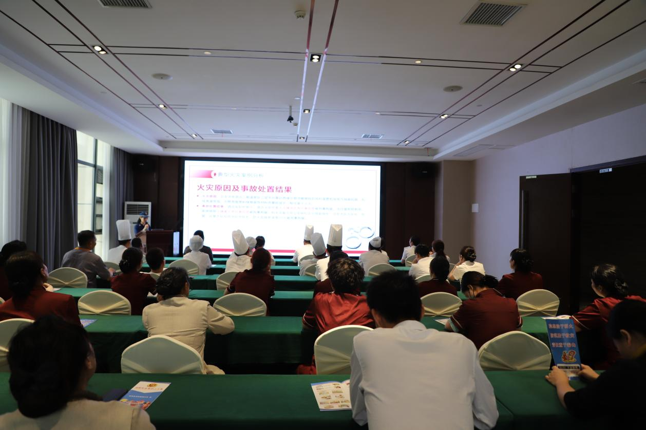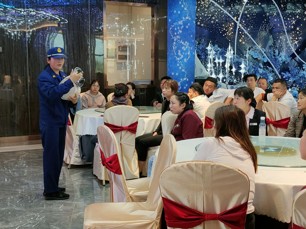 “會使用滅火器撲救初起火災是每名員工都應具備的消防技能”“廚房用火用電集中,大家一定要重視,用火不離人,要養成人走火關的好習慣”4月25日,“火焰藍”宣教隊組織康悅酒店全體廚師、配菜員、員工等60余人開展消防安全知識培訓,講解了火場中如何正確逃生自救、日常工作和生活中的火災防范措施、如何開展火災隱患自查自糾等消防安全知識,現場教授消防水帶水槍、滅火器的操作方法等。