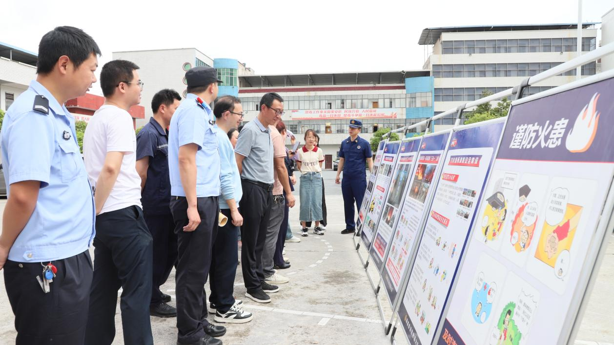 最后,“火焰藍”宣教隊帶領參訓人員參觀了消防宣傳展板,對電動自行車安全管理規定和關于拆除防盜網等影響逃生與救援的障礙物的通告進行了解讀,呼吁工作人員在開展消防安全檢查時提醒居民及時拆除防盜網,全力打通“生命通道”,對電動車入戶充電和飛線充電的居民,要及時上門勸阻。