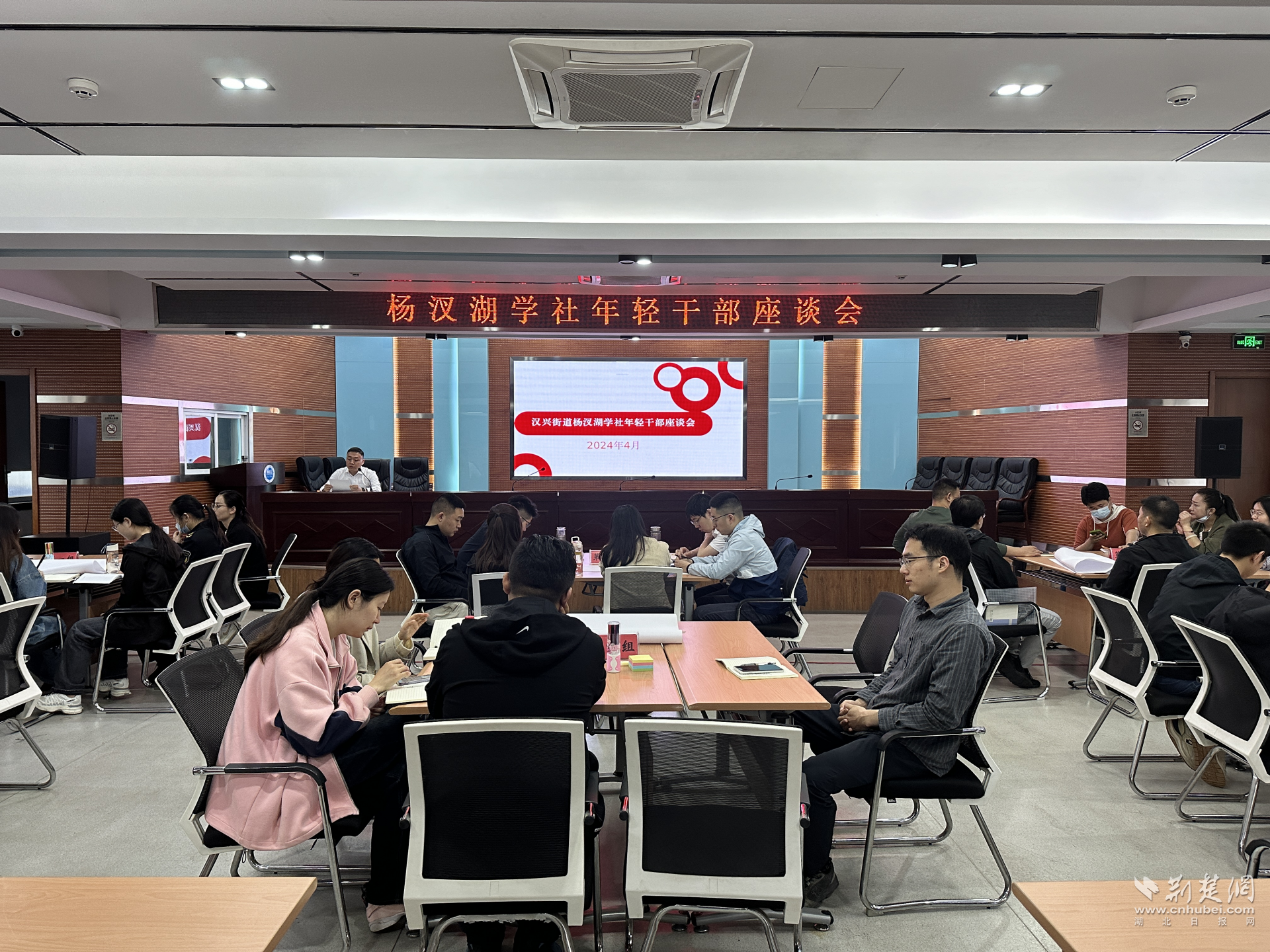 荊楚網(wǎng)(湖北日?qǐng)?bào)網(wǎng))訊(通訊員 姚雨澤)為深入學(xué)習(xí)貫徹黨的二十大精神和習(xí)近平總書(shū)記關(guān)于年輕干部工作的重要論述,紀(jì)念五四運(yùn)動(dòng)105周年,4月30日,武漢市江漢區(qū)漢興街道召開(kāi)年輕干部座談會(huì),街道相關(guān)領(lǐng)導(dǎo)、“楊汊湖學(xué)社”全體學(xué)員、社區(qū)實(shí)踐鍛煉干部共50余名年輕干部齊聚一堂,分成6個(gè)青年理論學(xué)習(xí)小組進(jìn)行交流研討、暢談心得體會(huì)。這也是漢興街道深化實(shí)施年輕干部“育苗墩苗工程”、運(yùn)用共同締造理念探索加強(qiáng)干部隊(duì)伍建設(shè)的具體舉措。