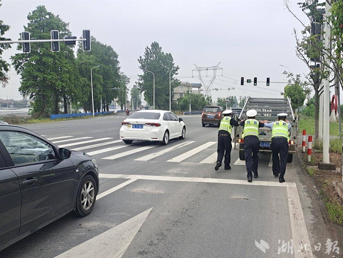 5月1日9時20分,蔡甸區交通大隊三中隊民警李浩東帶隊巡邏至318國道薛山村路段時,發現一輛小貨車拋錨無法正常行駛,停在318國道最右側車道,影響后方車輛安全通行。