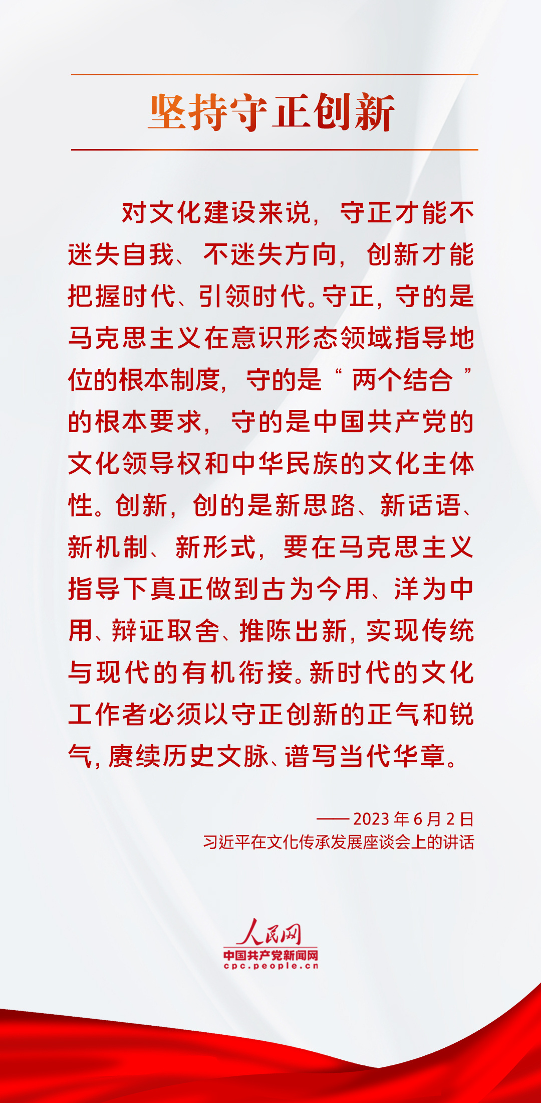 堅持守正創新,實現傳統與現代的有機銜接,不斷為豐富和發展人類文明新形態注入活力。守正才能不迷失自我、不迷失方向,創新才能把握時代、引領時代。在五千多年中華文明深厚基礎上建設中華民族現代文明,要把握好守正創新的辯證法。一是堅持守正的正氣。堅持馬克思主義在意識形態領域指導地位的根本制度,堅持“兩個結合”的根本要求,堅持中國共產黨的文化領導權和中華民族的文化主體性。既不盲從各種教條,也不照搬外國理論和模式,決不犯失去魂脈和根脈的顛覆性錯誤,始終立足自身歷史和現實推進文化建設。二是激揚創新的銳氣。在馬克思主義指導下真正做到古為今用、洋為中用、辯證取舍、推陳出新,實現傳統與現代的有機銜接。在更廣闊的文化空間中,充分運用中華優秀傳統文化的寶貴資源,探索面向未來的理論和制度創新,以新思路、新話語、新機制、新形式為豐富和發展人類文明新形態不斷注入活力,為人類文明進步貢獻更多力量。——《人民日報》
