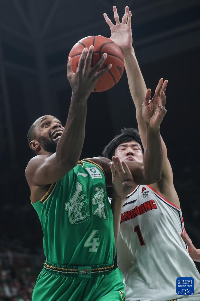 5月1日,廣東華南虎隊(duì)球員沃特斯(右二)在比賽中上籃。