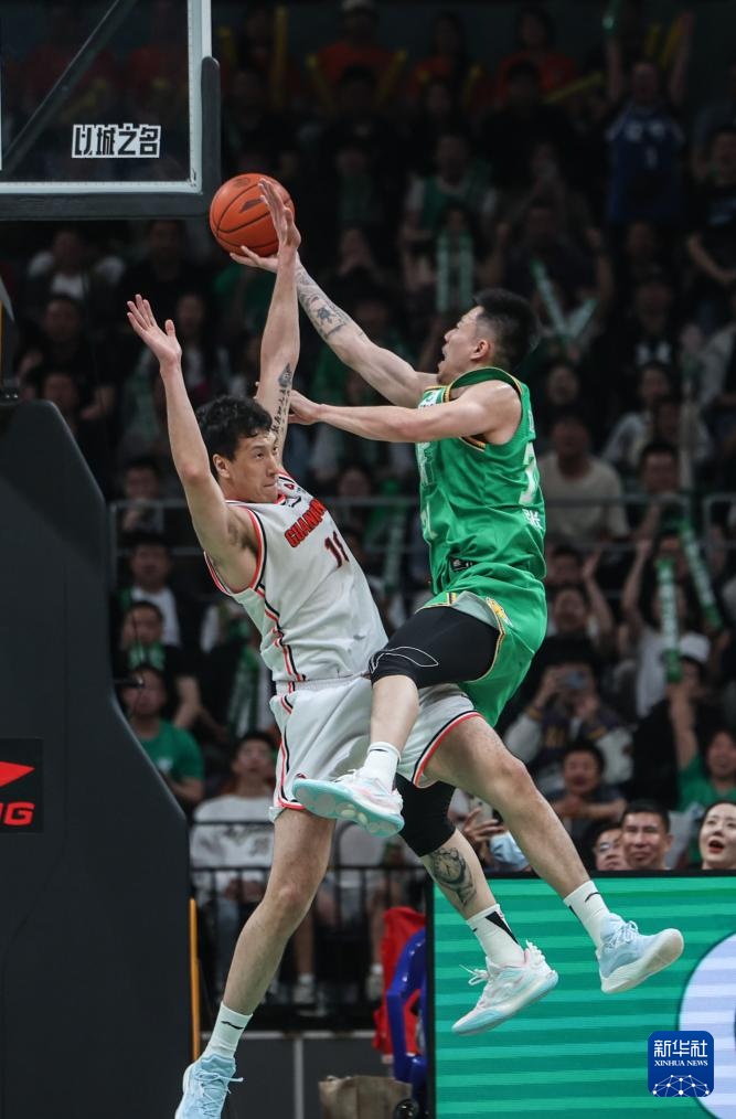 5月1日,遼寧本鋼隊(duì)球員張鎮(zhèn)麟(右)在比賽中上籃。