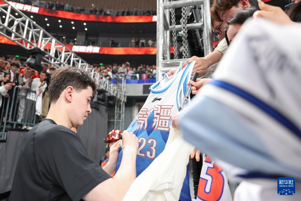 5月2日,新疆伊力特隊球員阿不都沙拉木賽后為球迷簽名。新華社記者 胡虎虎 攝