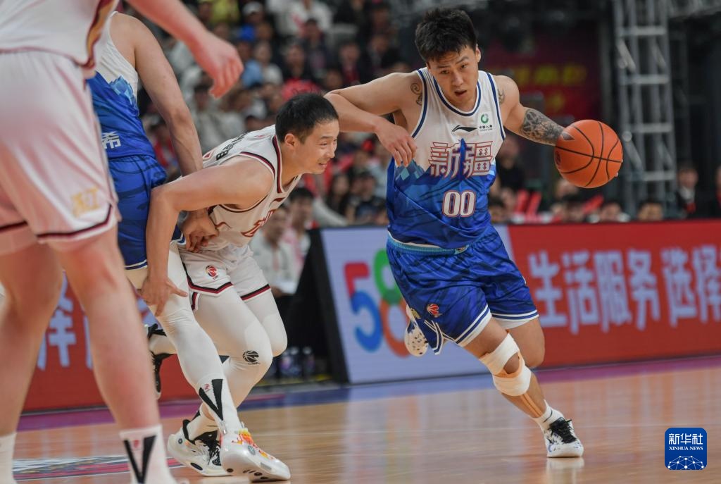 5月4日,新疆伊力特隊球員趙睿(右)在比賽中帶球突破。新華社記者 王菲 攝