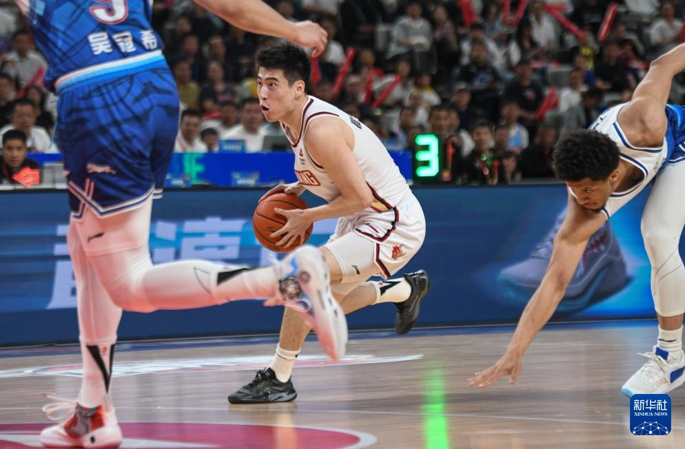 5月4日,新疆伊力特隊球員趙睿(中)在比賽中帶球突破。新華社記者 王菲 攝