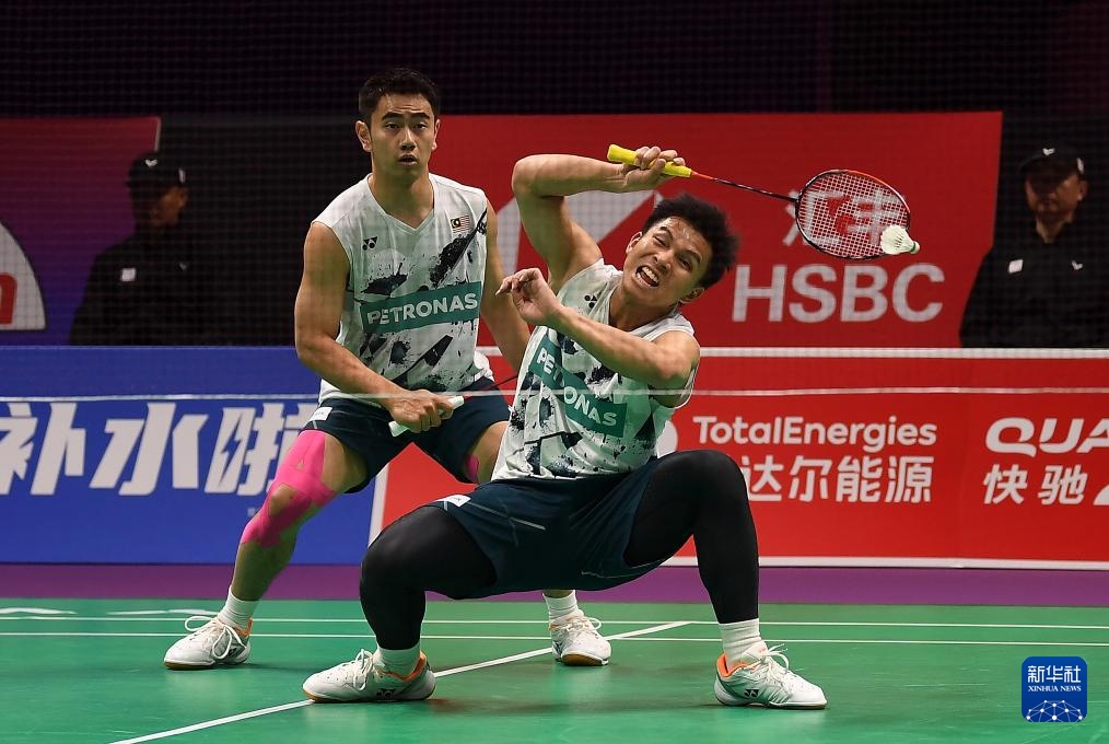 5月4日,馬來西亞隊組合吳世飛/努·伊祖丁 (前)在男子雙打比賽中。他們1比2不敵中國隊組合何濟(jì)霆/任翔宇。新華社記者 侯昭康 攝