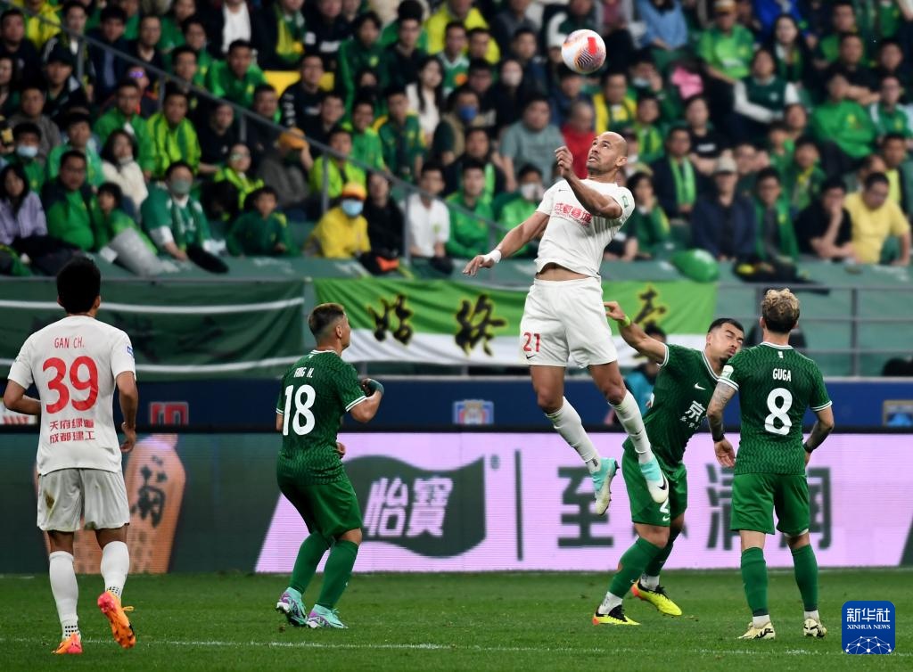 5月5日,北京國安隊球員古加(右)在比賽中。新華社記者 張晨霖 攝