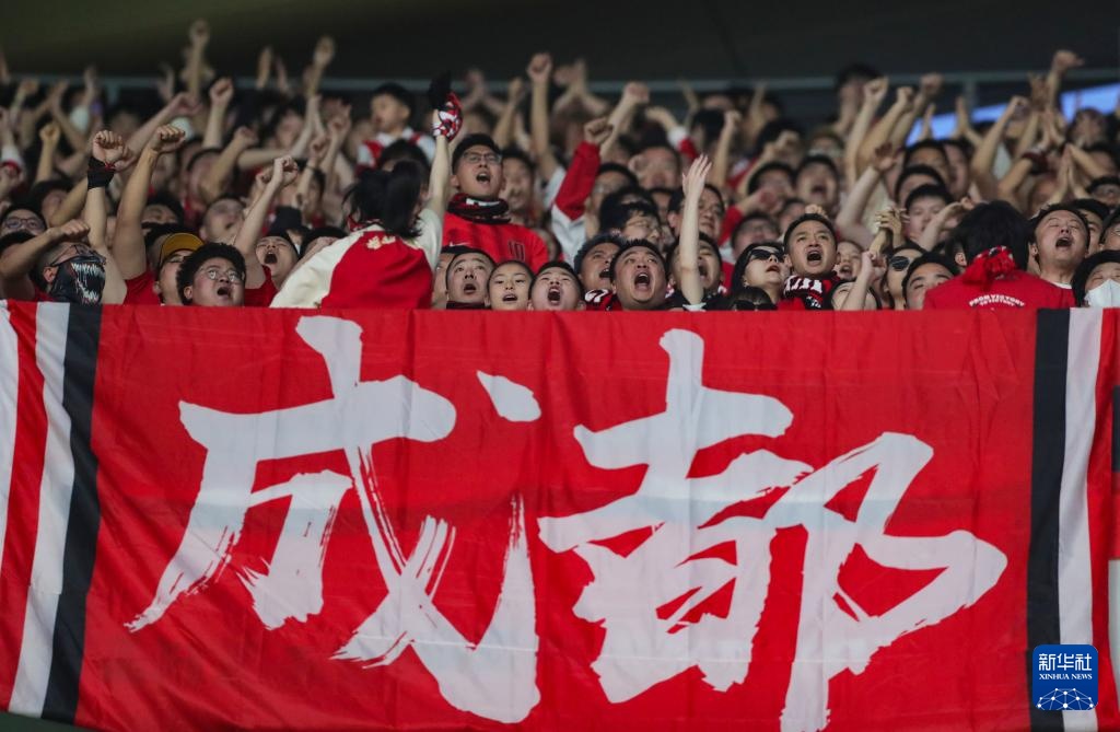 5月5日,成都蓉城隊球迷在比賽前吶喊助威。新華社記者 胡星宇 攝
