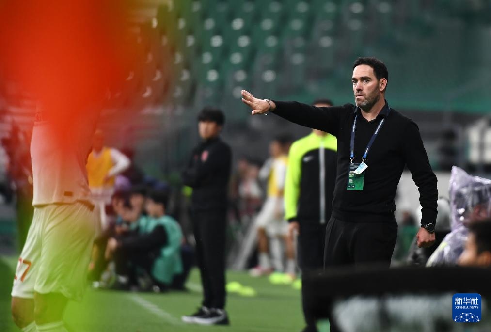 5月5日,北京國安隊主教練里卡多·蘇亞雷斯在場邊指揮。新華社記者 張晨霖 攝