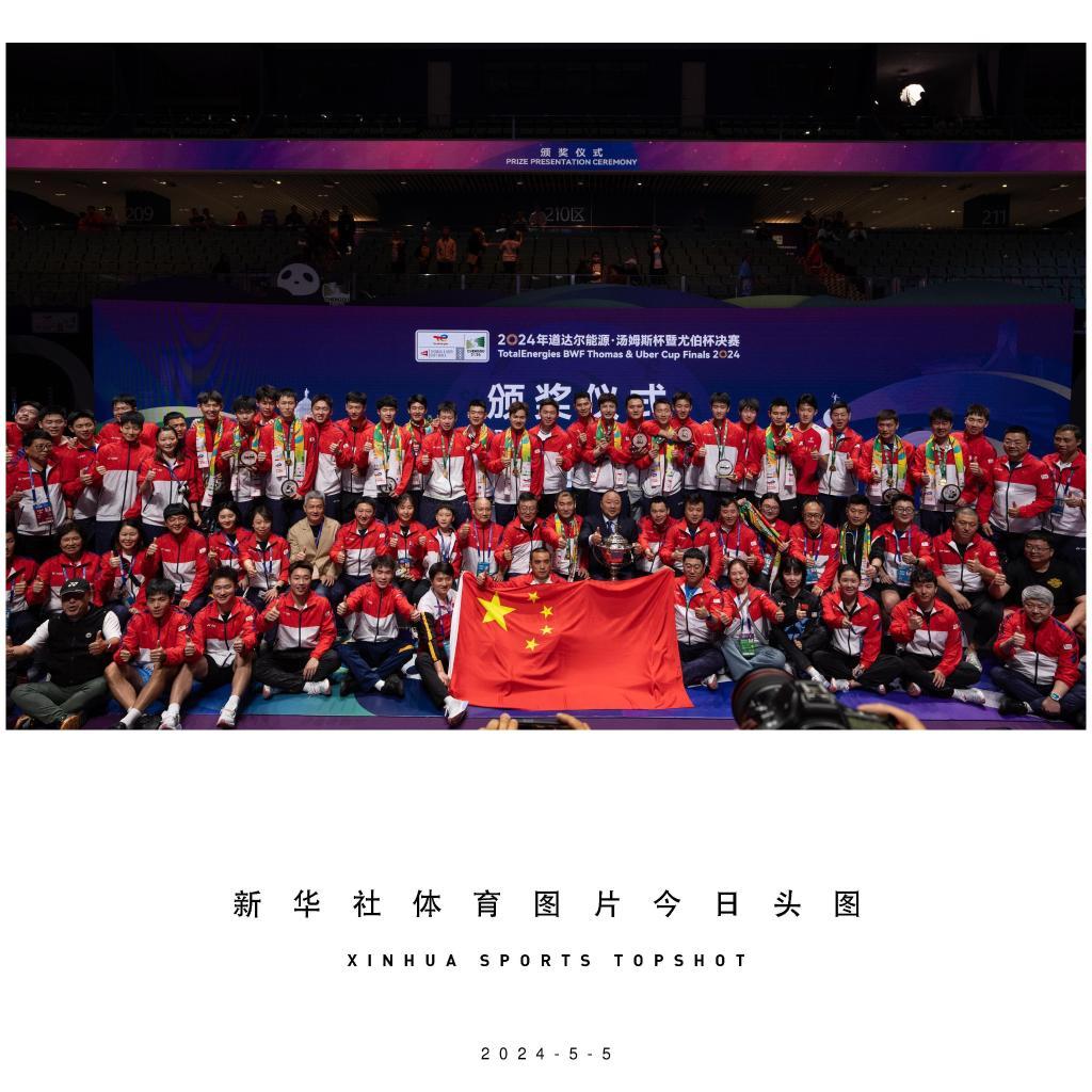當日,2024年湯姆斯杯暨尤伯杯羽毛球團體賽在四川成都決出冠軍。國羽男、女隊均在決賽中戰勝印度尼西亞隊,時隔12年再度包攬湯尤杯。