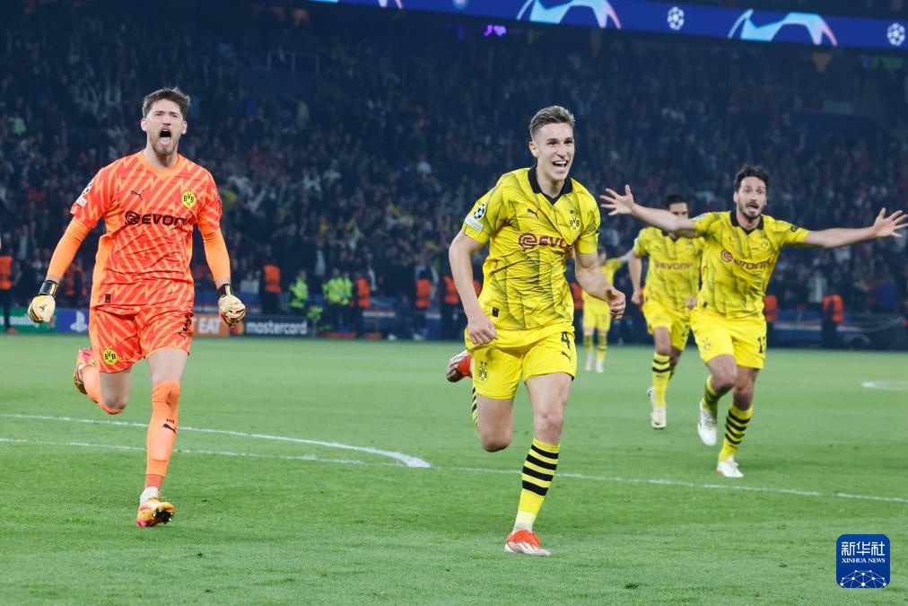 當日,在2023-2024賽季歐洲足球冠軍聯賽半決賽次回合比賽中,德甲多特蒙德隊客場1比0戰勝法甲巴黎圣日耳曼隊,總比分2比0晉級決賽。