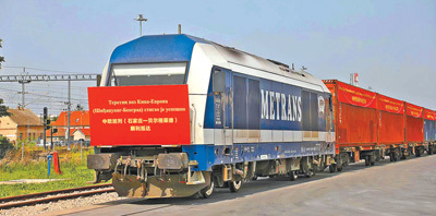 近日,由石家莊國際陸港開行的首列直通塞爾維亞的中歐班列抵達塞爾維亞首都貝爾格萊德。 本報記者 謝亞宏攝 |