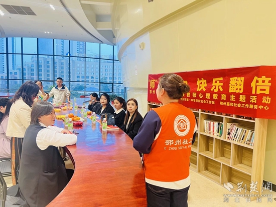 荊楚網(湖北日報網)訊(通訊員 丁潔 謝雷)5月5日下午,鄂州市第一中學攜手嘉和社工開展“‘師’放情緒 快樂翻倍”教師心理健康主題活動。