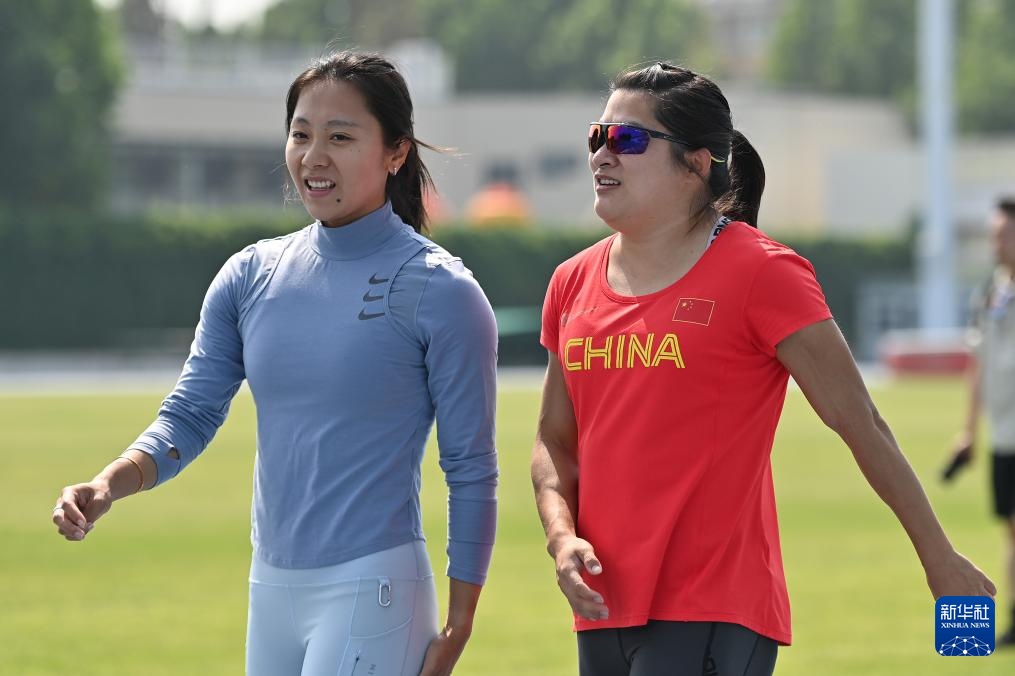 5月9日,中國田徑隊隊員葛曼棋(左)和袁琦琦在訓練中。新華社記者 宋彥樺 攝