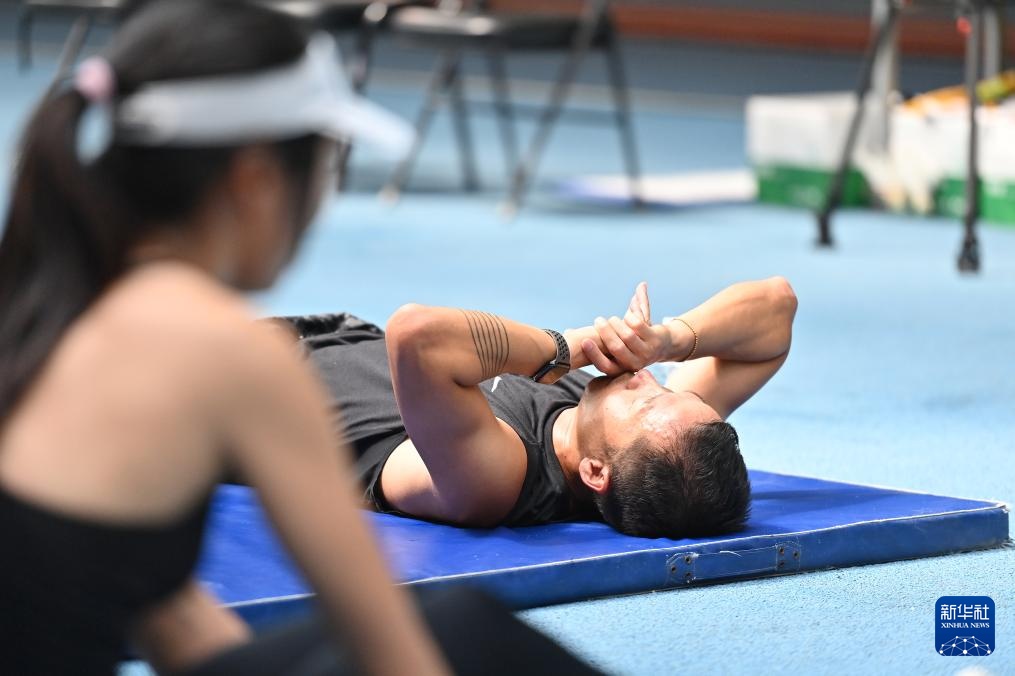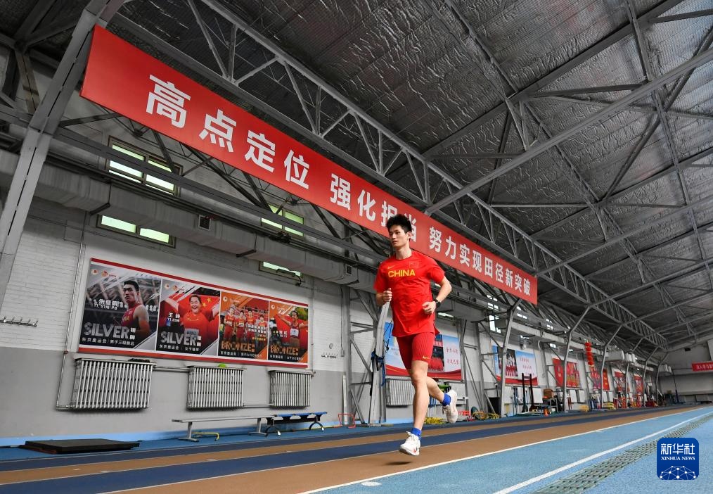 當日,中國田徑隊在北京國家體育總局訓練局進行訓練。