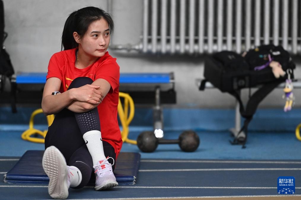 5月9日,中國田徑隊隊員黃紫婷在訓練前熱身。新華社記者 宋彥樺 攝