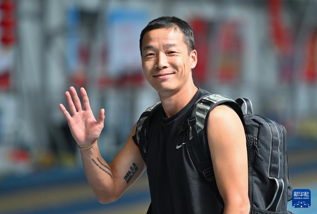 5月9日,中國田徑隊隊員吳智強來到訓練場地。新華社記者 宋彥樺 攝