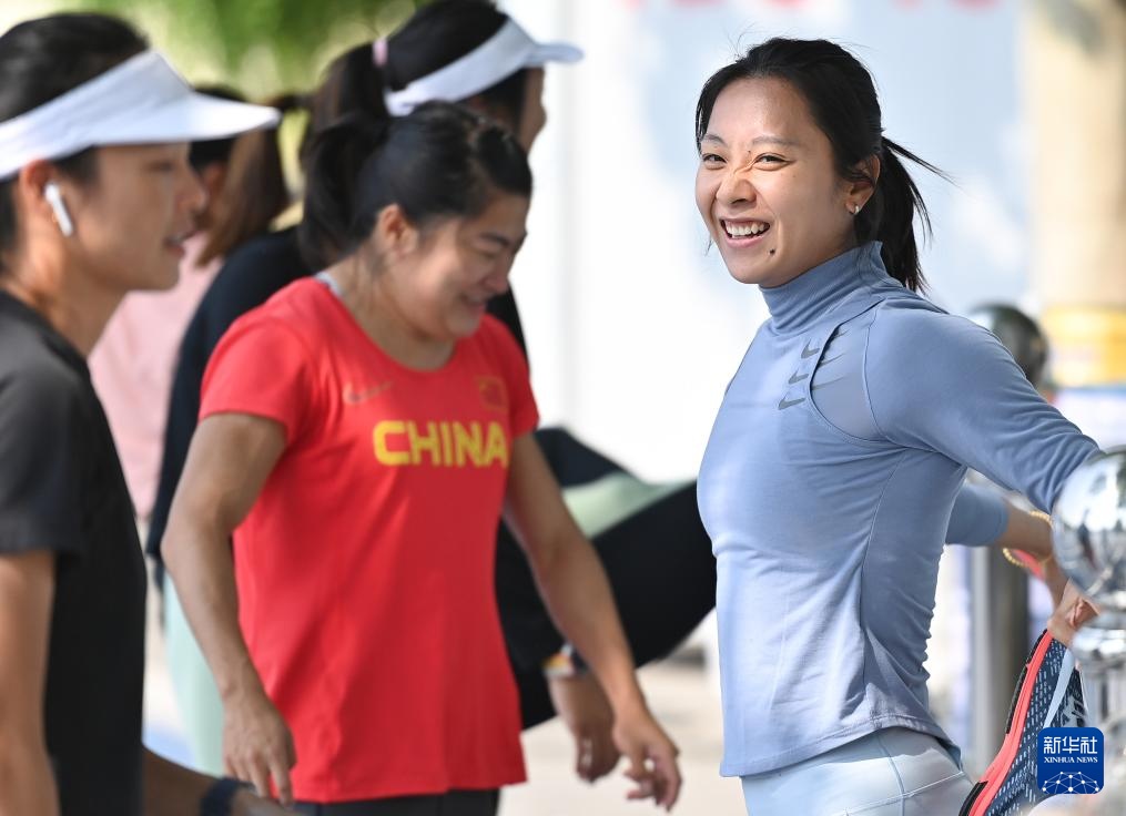 5月9日,中國田徑隊隊員葛曼棋(右一)在訓練中。新華社記者 宋彥樺 攝