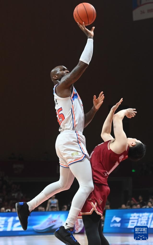 5月9日,新疆伊力特隊球員瓊斯(左)在比賽中投籃。新華社記者 黃宗治 攝