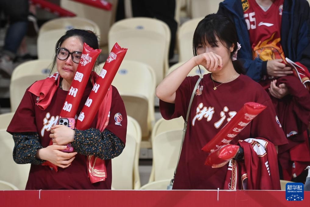 5月9日,浙江稠州金租隊球迷在比賽后傷心落淚。新華社記者 黃宗治 攝