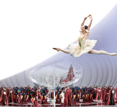 圖片從上至下依次為: 國(guó)家大劇院外景。 法國(guó)波爾多國(guó)家歌劇院芭蕾舞團(tuán)演出照。 國(guó)家大劇院制作古諾歌劇《羅密歐與朱麗葉》劇照。 以上圖片均為國(guó)家大劇院提供 |