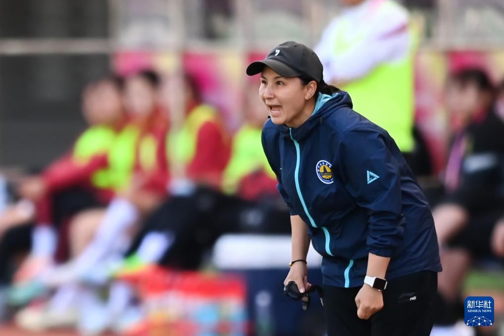 5月12日,陜西志丹隊主教練劉華娜在比賽中指揮。新華社記者 鄒競一 攝