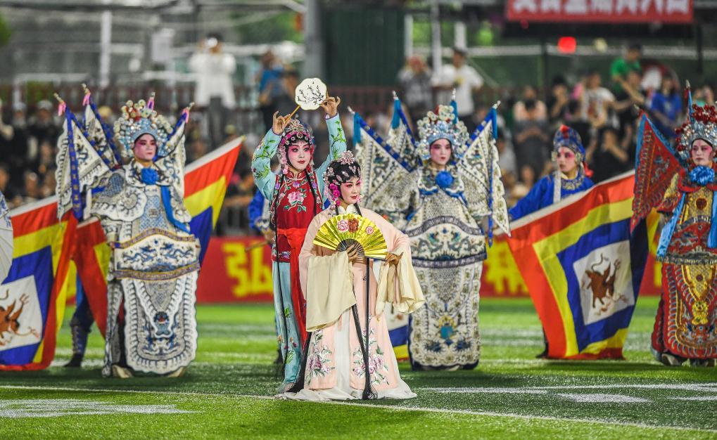 遼寧東港草莓足球隊帶來嗩吶表演、中山大學鳳慶滇紅茶足球隊帶來蘆笙舞、畢節南山羊肉粉足球隊帶來彝族舞蹈……在“帶著非遺上村超”“來村超約場球”等活動的聚力匯智作用下,榕江攜手各地推動了“村超”流量的共建共享。