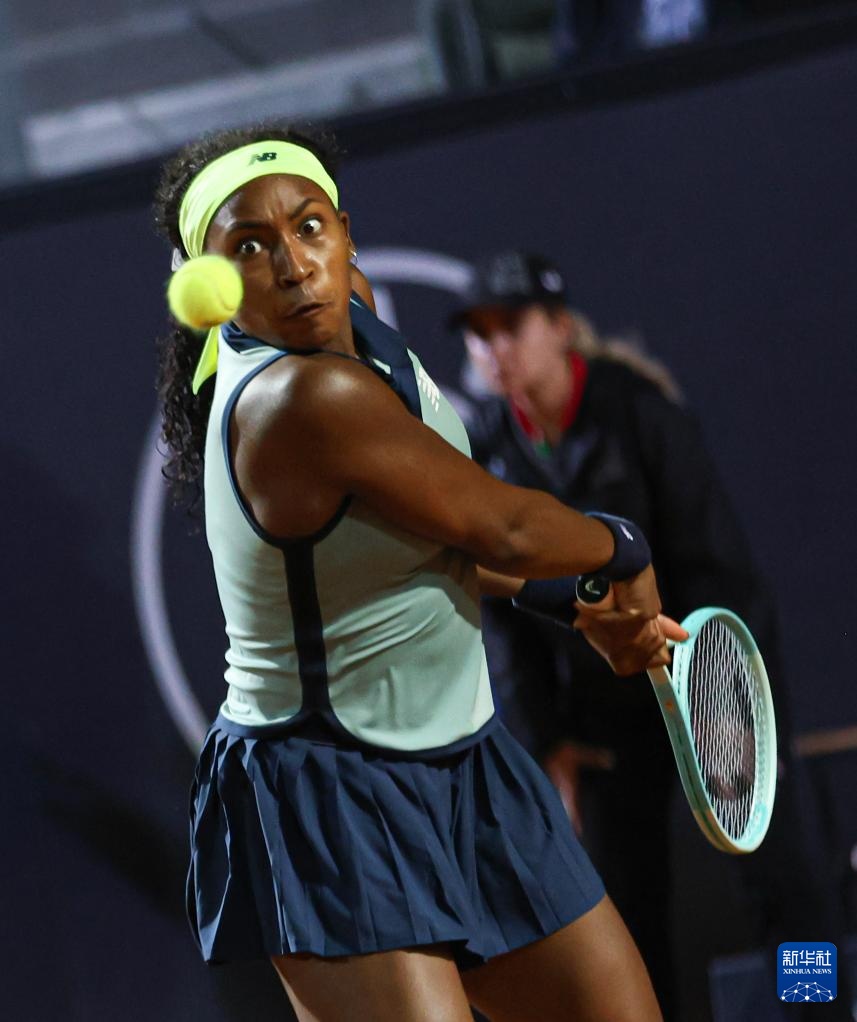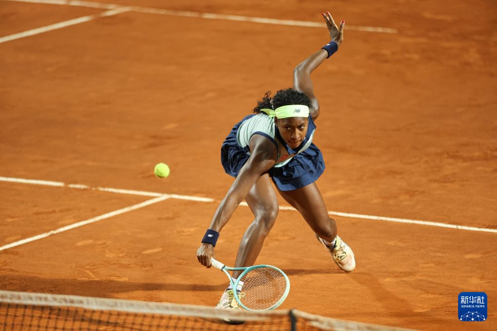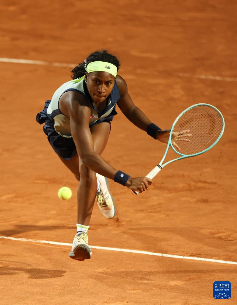 5月14日,高芙在比賽中回球。新華社記者 李京 攝