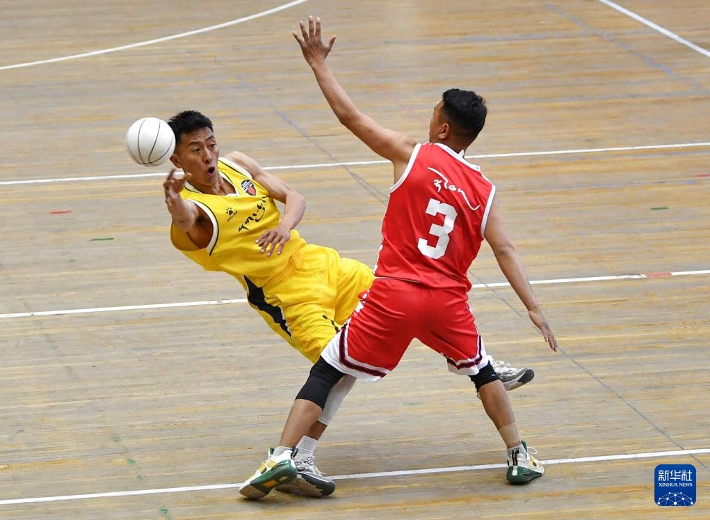 5月14日,山南隊江濤(左)在比賽中得分。新華社記者 晉美多吉 攝