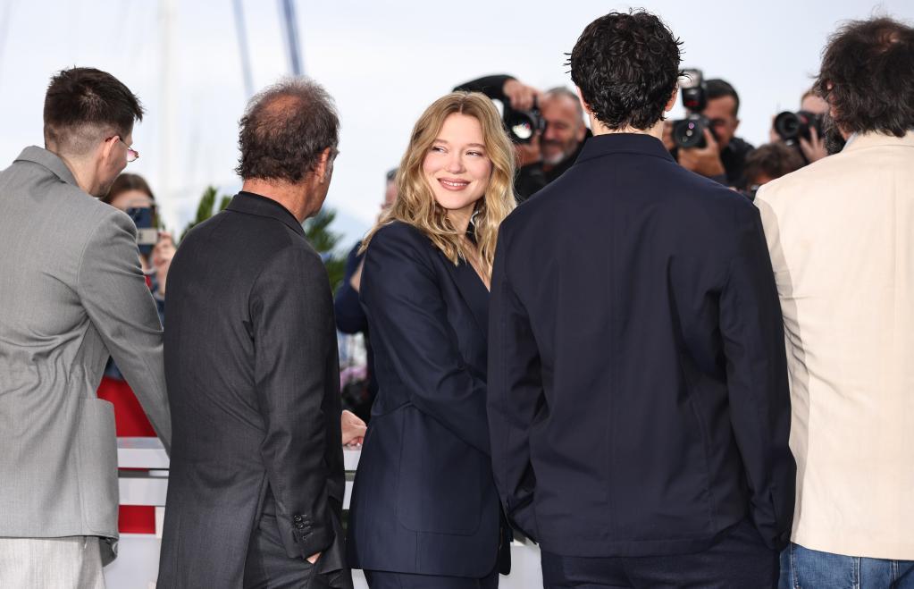 5月15日,在法國南部小城戛納舉行的第77屆戛納國際電影節上,開幕影片《第二幕》的主演、法國演員蕾雅·塞杜(中)等亮相拍照式。新華社記者 高靜 攝