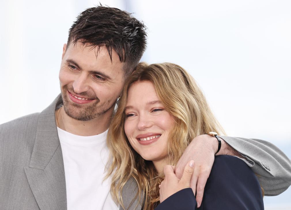 5月15日,在法國南部小城戛納舉行的第77屆戛納國際電影節上,開幕影片《第二幕》的主演、法國演員蕾雅·塞杜(右)和拉斐爾·凱納爾亮相拍照式。新華社記者 高靜 攝